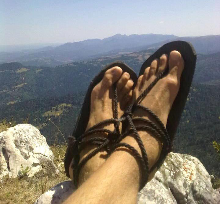 Deocamdată am alergat doar în pantofi sport. O mare parte din traseu e alcătuită din drum forestier și stâncos, așa că varianta „desculț” e pentru moment scoasă din calcul. Până acum, potecile au fost ude de la ploaie, ceea ce înseamnă că alergarea în sandale nu e practică, dar ieri și astăzi a bătut soarele, așa că mâine probabil încerc sandalele pentru prima oară, sau tabi de exterior.